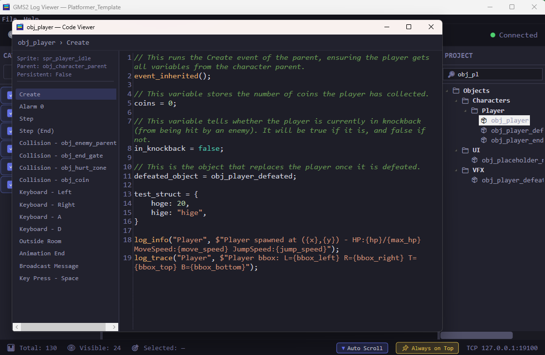 .yympsinto your GMS2 project - Launch the viewer and debug-run (F6) your game