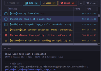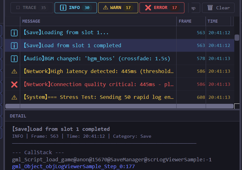 - Level filtering (TRACE / INFO / WARN / ERROR)